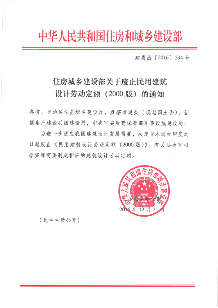 住房城鄉建設部關于廢止民用建筑設計勞動定額(2000版)的通知