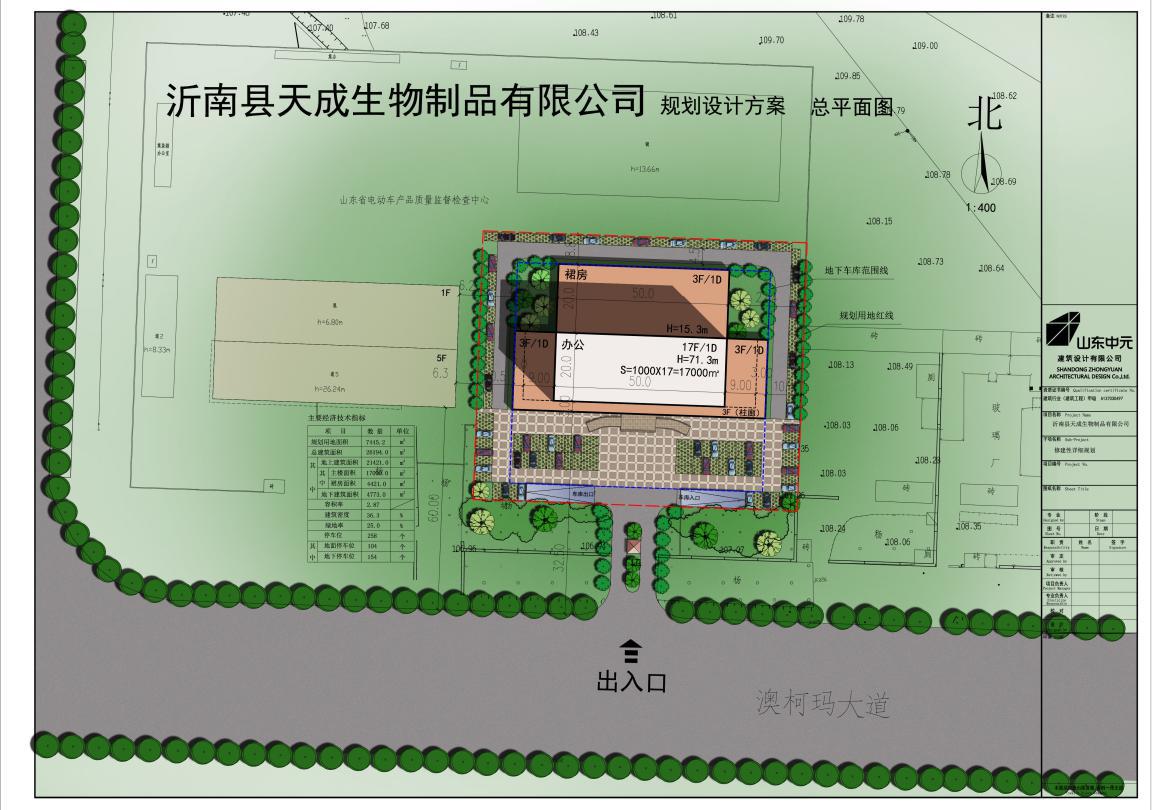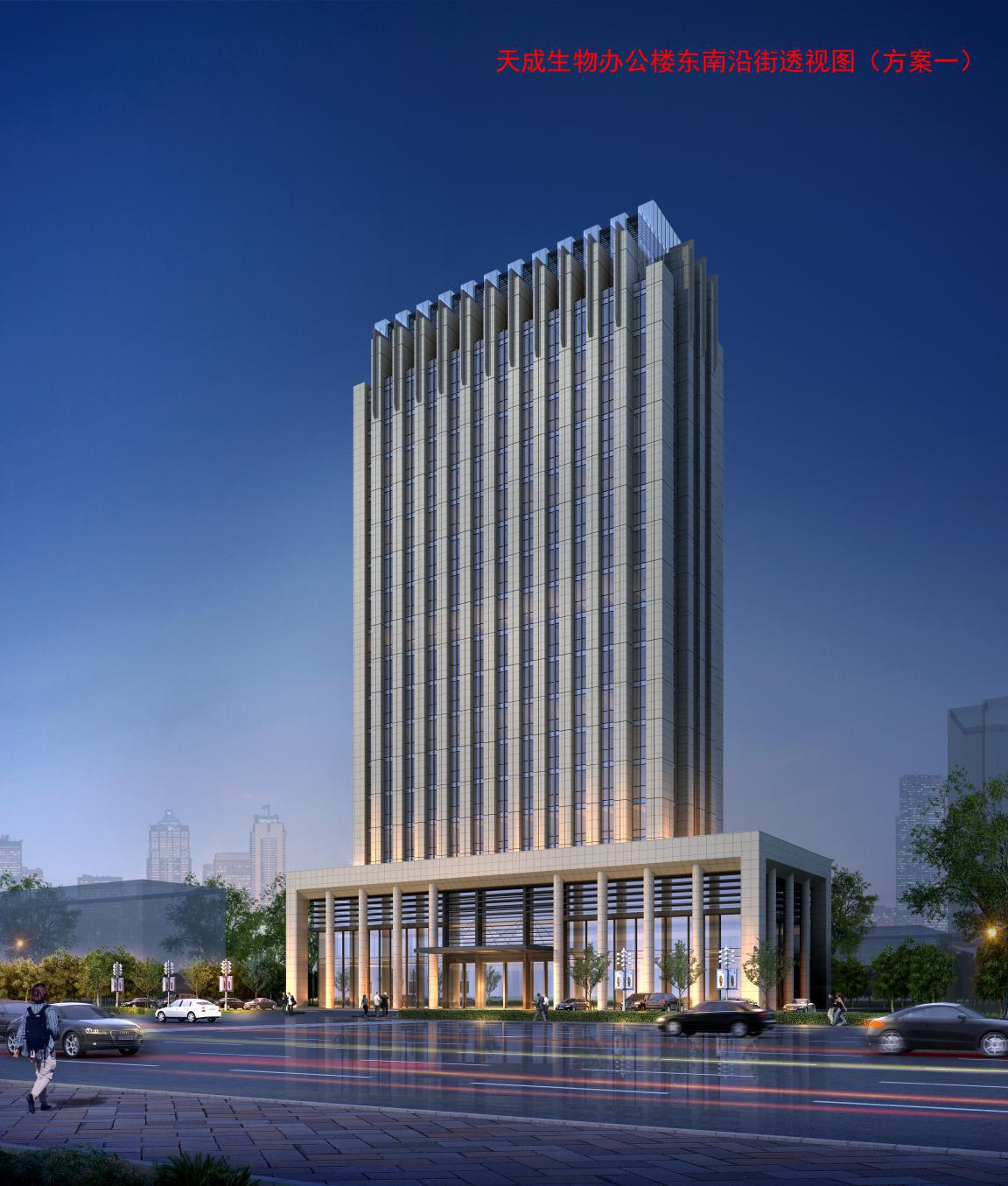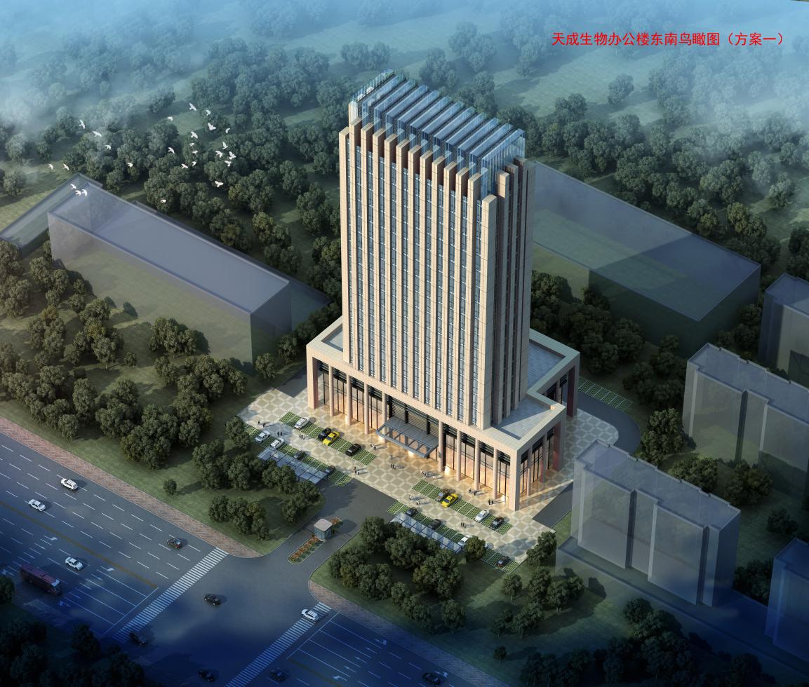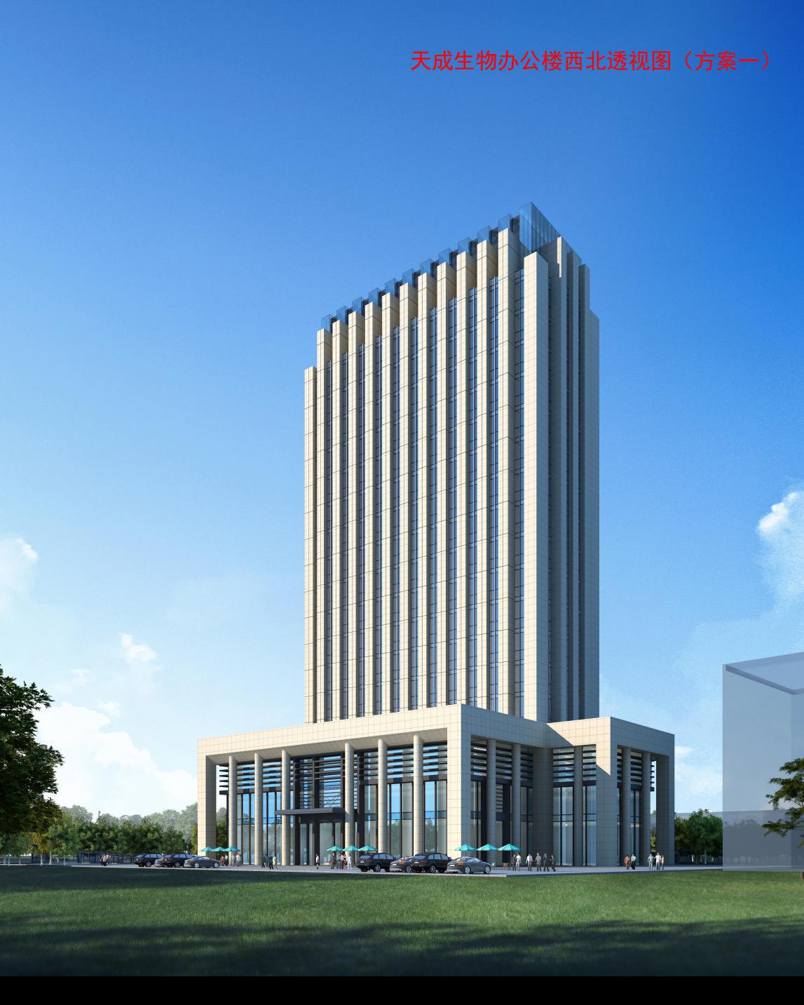 天成生物有限公司辦公樓位于沂南縣澳柯瑪大道,規(guī)劃面積有7445.2㎡,建筑面積26194.0㎡,地上17層地下1層,停車位規(guī)劃二百五十多個,極大的滿足了辦公停車需求。甲方要求辦公樓簡潔實(shí)用,美觀大方。所以規(guī)劃設(shè)計時,規(guī)劃設(shè)計師充分考慮到實(shí)用與建筑美觀相結(jié)合,設(shè)計中使用簡約風(fēng)格。簡約風(fēng)格的特色是將設(shè)計的元素、色彩、照明、原材料簡化到最少的程度,但對色彩、材料的質(zhì)感要求很高。因此,簡約的空間設(shè)計通常非常含蓄,往往能達(dá)到以簡勝繁的效果。在主樓低層?xùn)|、西、北三面向外延伸加建裙房,三個裙房成品字型環(huán)繞主樓把主樓圍在中間,并在裙房最外部延邊設(shè)置圓柱,使整個底部既美觀又堅固。裙房使用玻璃擋墻,透光性好。主樓設(shè)計中添加了線條美,以線成面,突顯出建筑的“肌肉”,線條從底部一直到頂部,筆直的聳立在那里。辦公樓的頂部形成交錯相隔,玻璃建筑與水泥建筑相融合,使得辦公樓頂部完美收關(guān)。